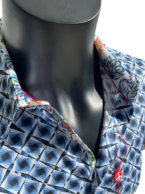 An ode to the iconic Beatles track 'Lucy in the Sky with Diamonds', this classic-cut short sleeve shirt features a grid of mesmerising diamonds in shades of blue. With contrast pattern trim and our signature John Lennon embroidered motif, you'll be reaching for this versatile shirt time and time again.