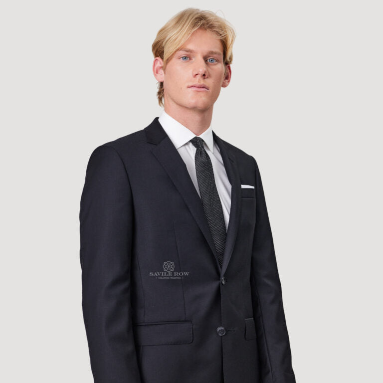 Finished in the deepest possible “Jet Black”- Our D9-Black fabric is very special; this high performance fabric is “Double Dyed” to get the ultimate deep jet black colour. This 100 % Australian merino wool fabric is woven in innovative weaving process combined with high twist and natural stretch to give ultimate comfort and crease-resistance. Highly practical for travelling, this breathable suit will ensure you always look your best.