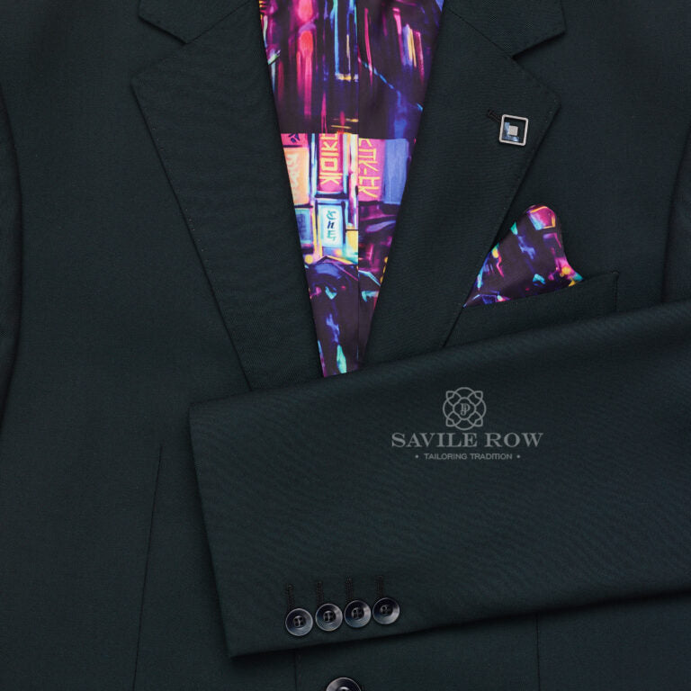 D2 Forest comes in 3 x piece suit option with matching waistcoat and trousers. This limited edition suit is complimented with a special bright coloured lining to brighten your day and night.