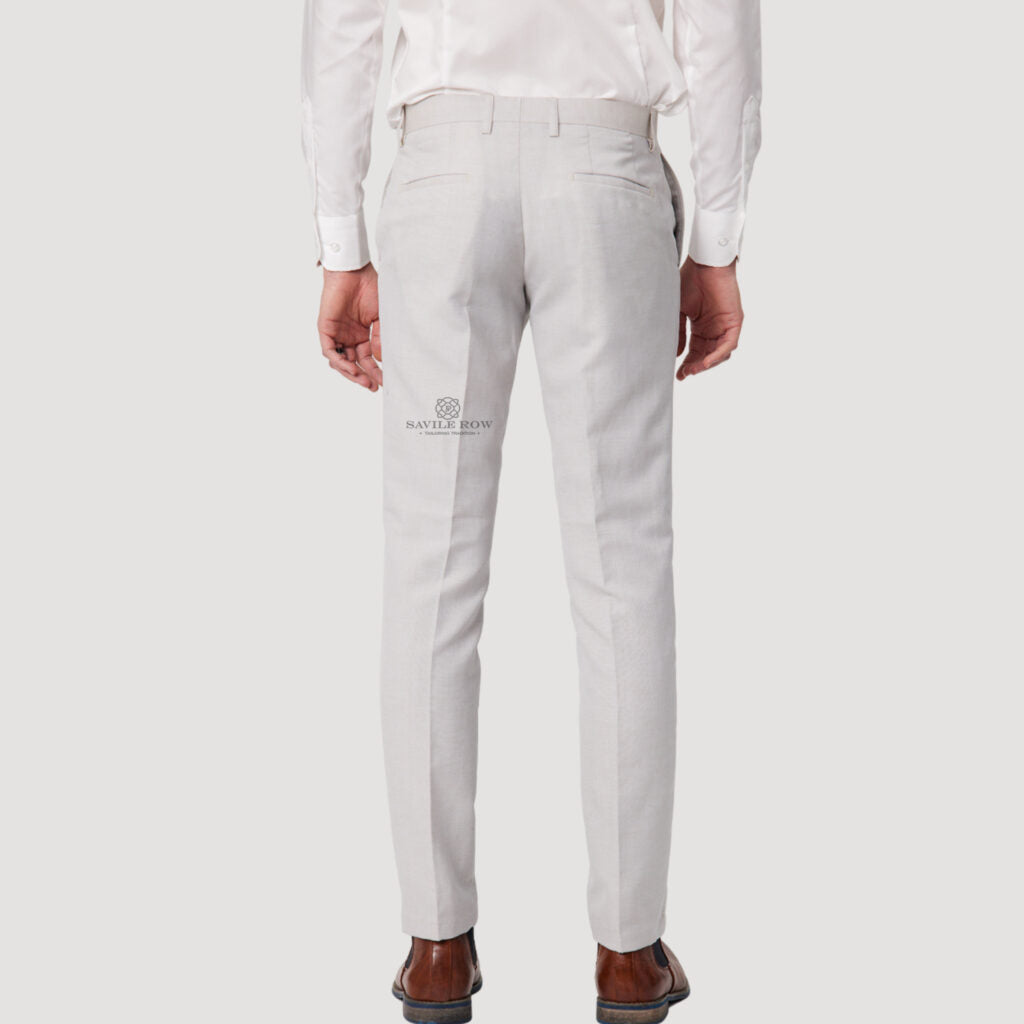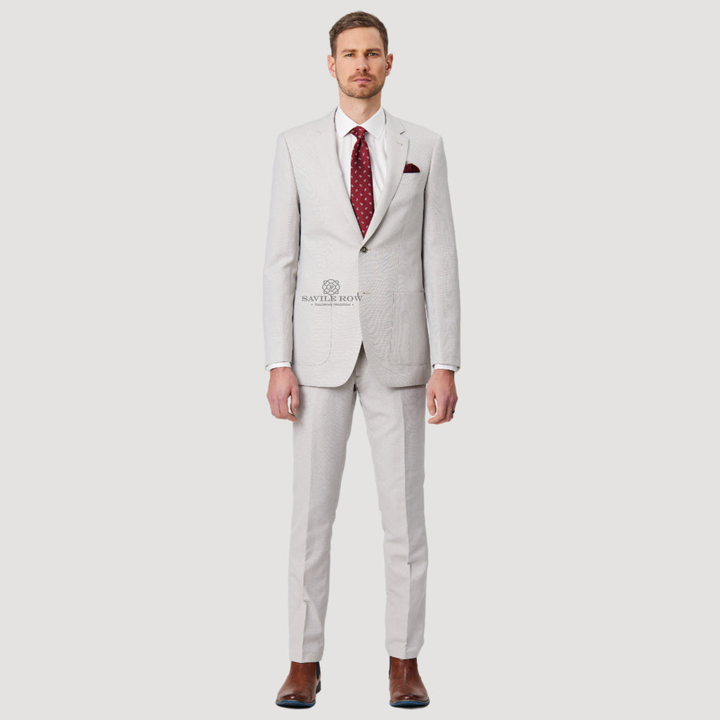 Savile Row Super Fine Wool & Linen Suit. Made from Australian Merino Wool blend with linen & hard-wearing polyester. This single breasted suit is perfect for all events including Weddings. It offers optimum breathability and comfort, making it the ideal choice for busy days at the office and formal events.