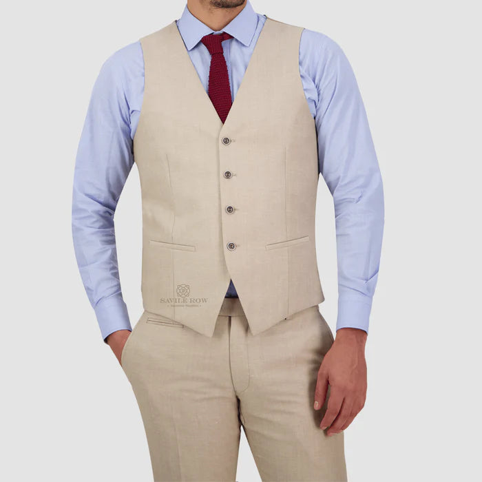 Tailored Fit / Four Button Front / Satin Back with Adjustable Tab / Pair with the Jesse Trouser and the Asher Suit / Linen and Wool Blend Mens Waistcoat great for Event Suits and Wedding Suits