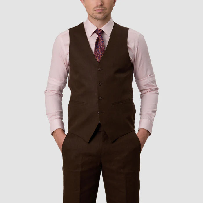 Tailored Fit Mens Suit Vest / Four Button Front / Great Spring Summer Linen Suiting / Satin Back with Adjustable Tab / Pair with the Jesse Suit Trouser and the Abram Suit Jacket / Perfect for Business Wear and Events