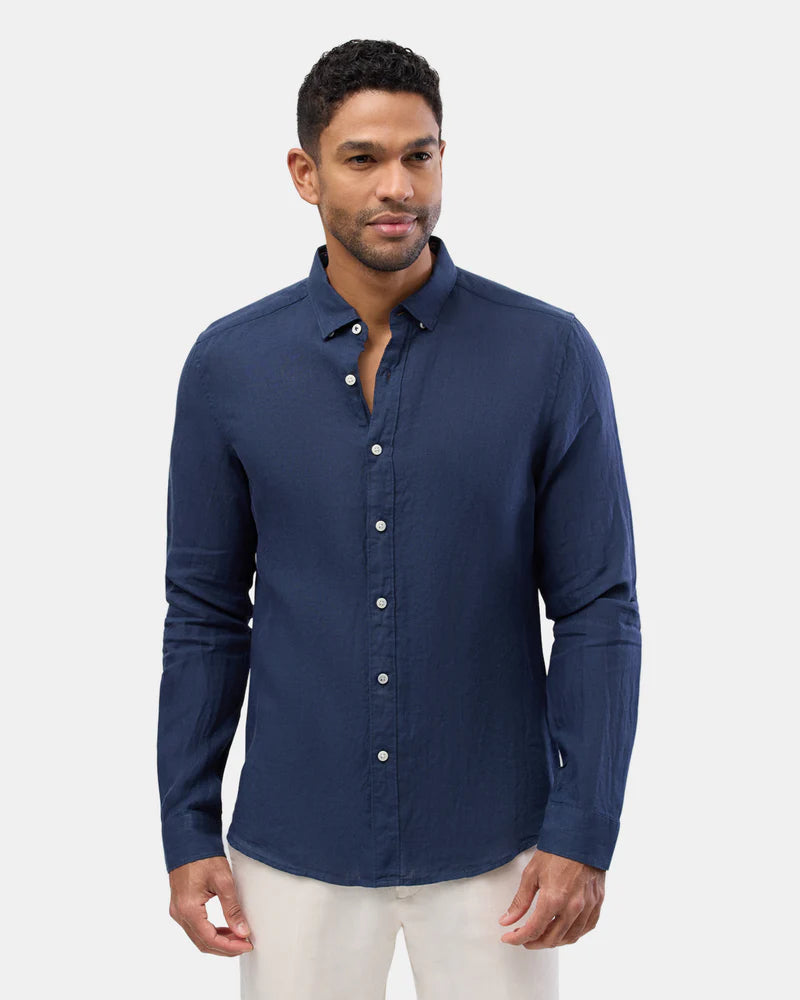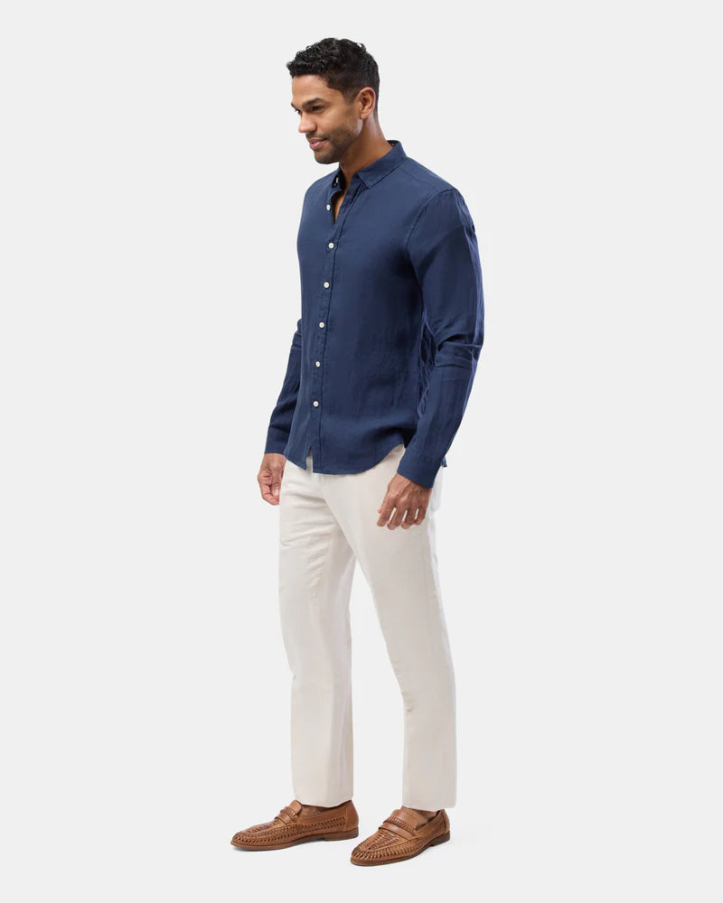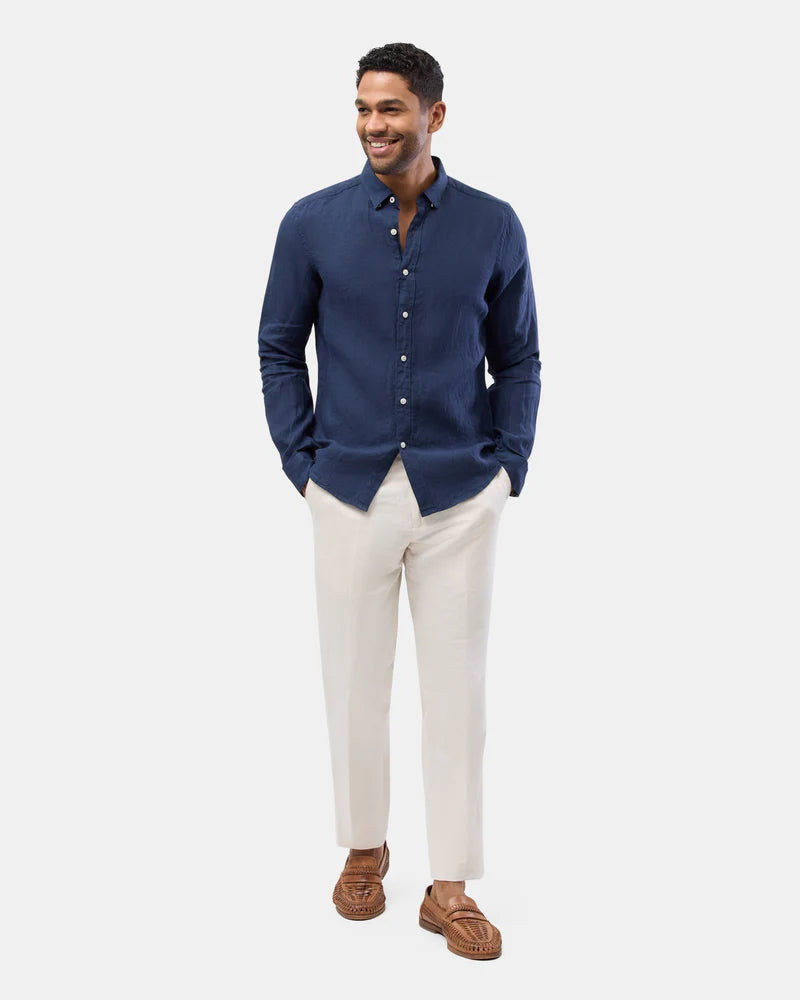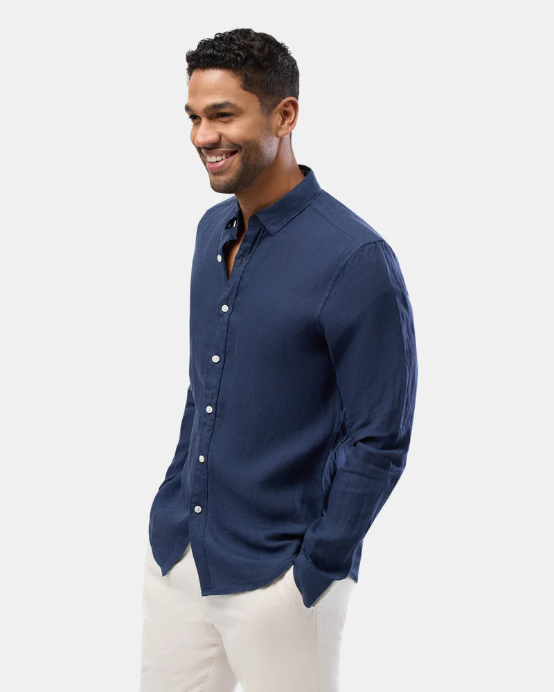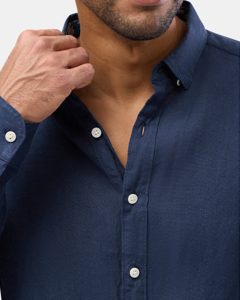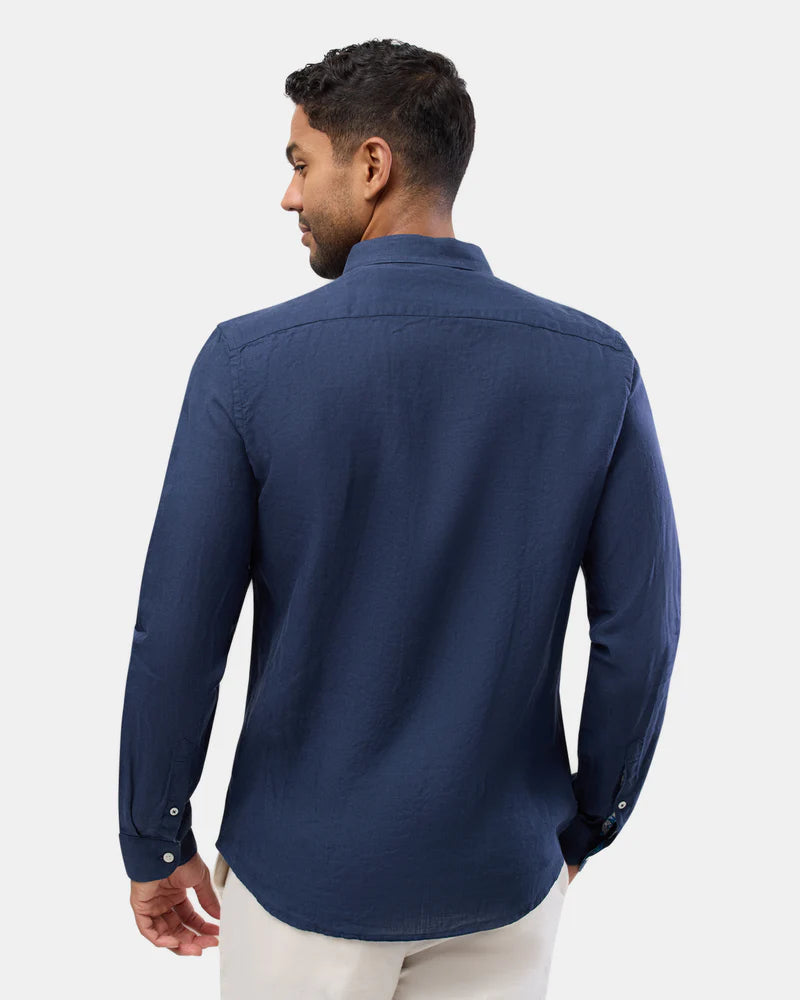 Brooksfield Navy LINEN CASUAL L/S SHIRT